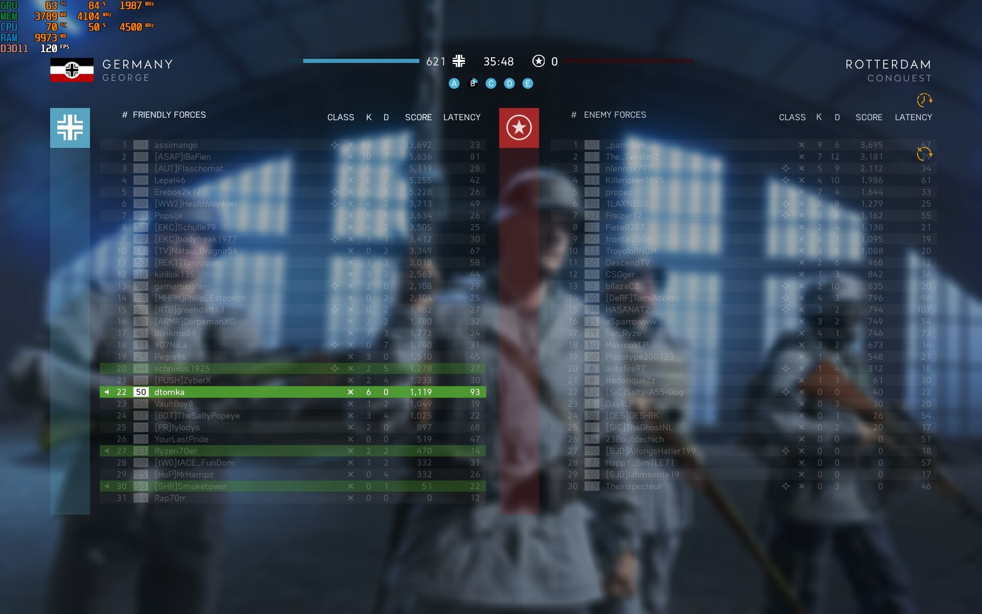 Aztán a következő pályán, Rotterdam. Német kezdőről a fix gépágyúban töltötte az egész kört. Akkor tudott lelőni valakit, ha az E pontot elfoglaltuk angolok ként és a lenti garázs résznél voltunk. Oda odalátott és szerzett magának pár killt.