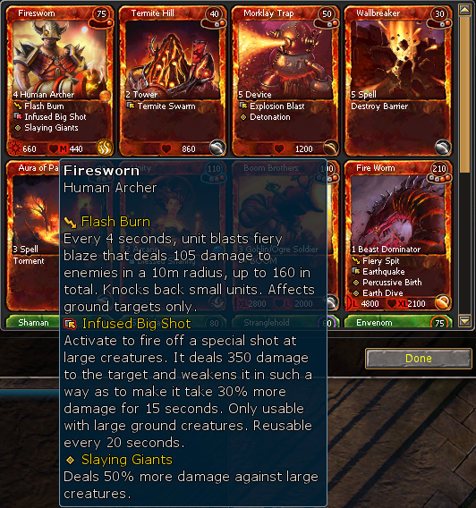 * The cards of the purchasable decks in the in-game have been exchanged. This includes the cards from the upcoming Lost Souls Edition. The Frost/Shadow deck now features the Lost Shade and the Knight of Chaos while the Fire/Nature deck features the Firesworn and the Entangle Tower.