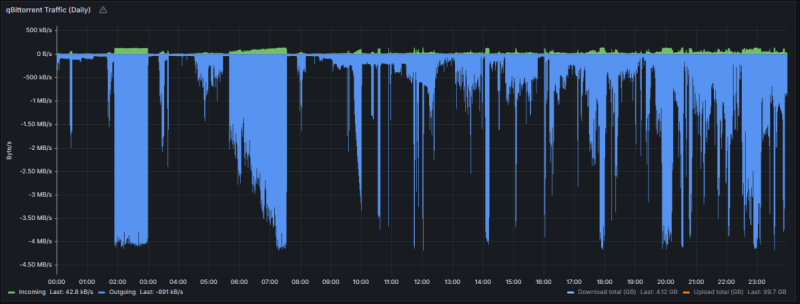 A one-tól (volt upc/vodafone koax) jöttem át a telekomhoz. Évek alatt gyakorlatilag leépült a feltöltésem, hónapokig ment fel 1 TB. A telekomnál pedig egy hónap alatt 2. A torrentek összetétele nem változott, a beállítások ugyanazok maradtak, mindkét szolgáltatónál aktív voltam/vagyok.