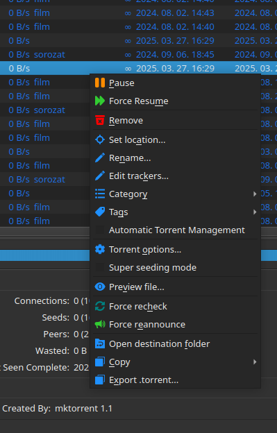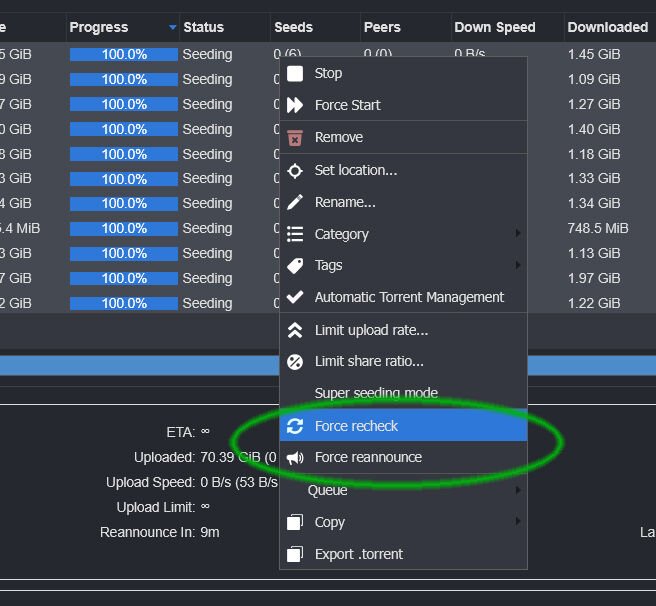Erre a "Force recheck" opcióra jó lenne már egy megerősítő visszakérdezés. Ma ismét sikerült véletlenül rányomni a "Force reannounce" helyett, így persze újra is ellenőrizte a kliens a 350 torrentet.