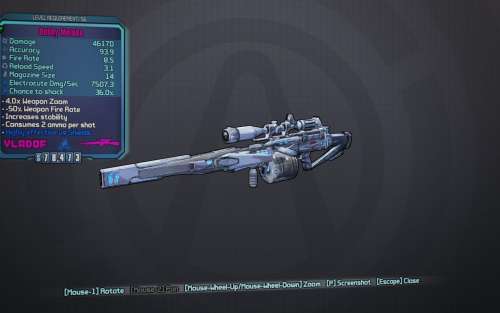 kicsit anomáliás a loot. nekem 56-os szinten adott egy kitűnő slages cartel railert (54k dmg, 52% slag chance), ami még most is remek kiegészítő a brutális (18x30k) texas quad mellé. aztán a 63-as szintig szinte semmi. 63-as szinttől elkezdtek tömegével esni botrányosan szar sniperek (40-50k dmg), leszámítva egy 91k-s trespassert (muchos gracias, pendejos). aztán a 65-ös szint elérése után hirtelen 90-110k közötti puskák potyognak. lehet, még ládázok egy kicsit, hátha lesz utódja a cartel railernek