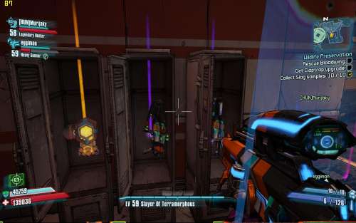 az előbb becsatlakoztam egy party-ba, én, meg egy srác voltunk 57-esek (gunzi és én zero személyében), egy 60-as manci, meg egy 59-es siren, de úgy hullottunk, mint a legyek... a 61-es SGT Loaderek meg a 62-es Super Badass Loaderek csak úgy özönlöttek, amikor próbáltuk megcsinálni azt a küldetést, amikor kinyitjuk az eridiumcsapokat, hogy túlterheljük a csöveket...
