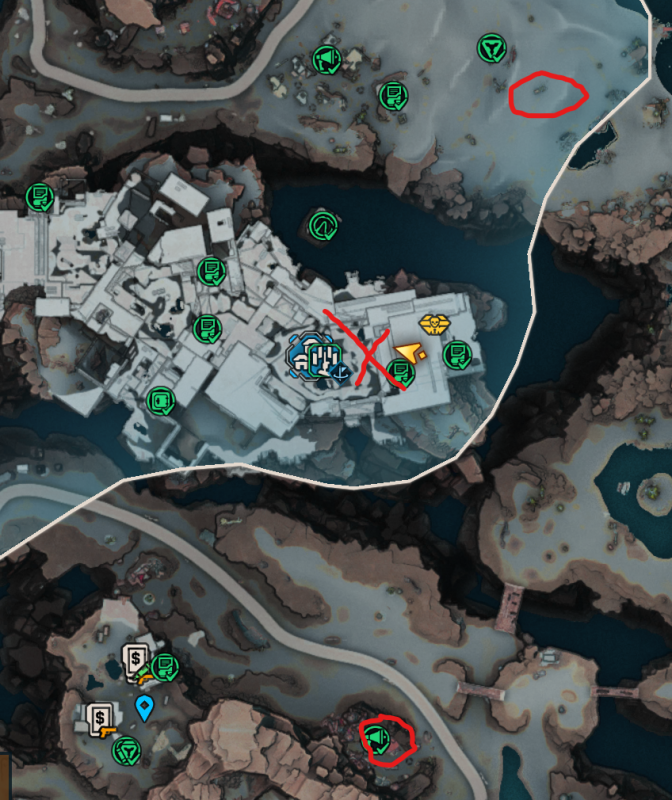 Közben találtam egy módszert az event farmolására. Az X-szel jelölt területen kell várni, és pár percenként megjelenik egy event boss a piros karikák egyikében. Mindkét terület pillanatok alatt elérhető. Aztán csak vissza kell teleportálni és várni.