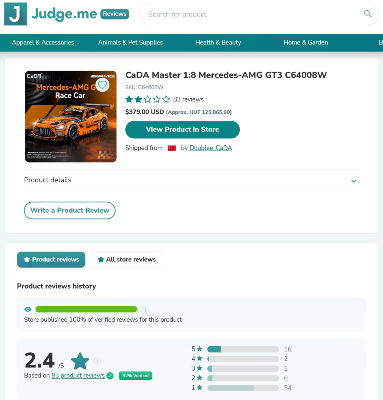 A CaDA oldalán a Mercedes-AMG GT3 értékelései keményen állnak. 83 értékelésből 54-en adtak rá 1 csillagot. A többi 5 csillagot, és pár darabok vannak a közbenső értékekből. Belelapoztam ezekbe, röviden a lényeg: