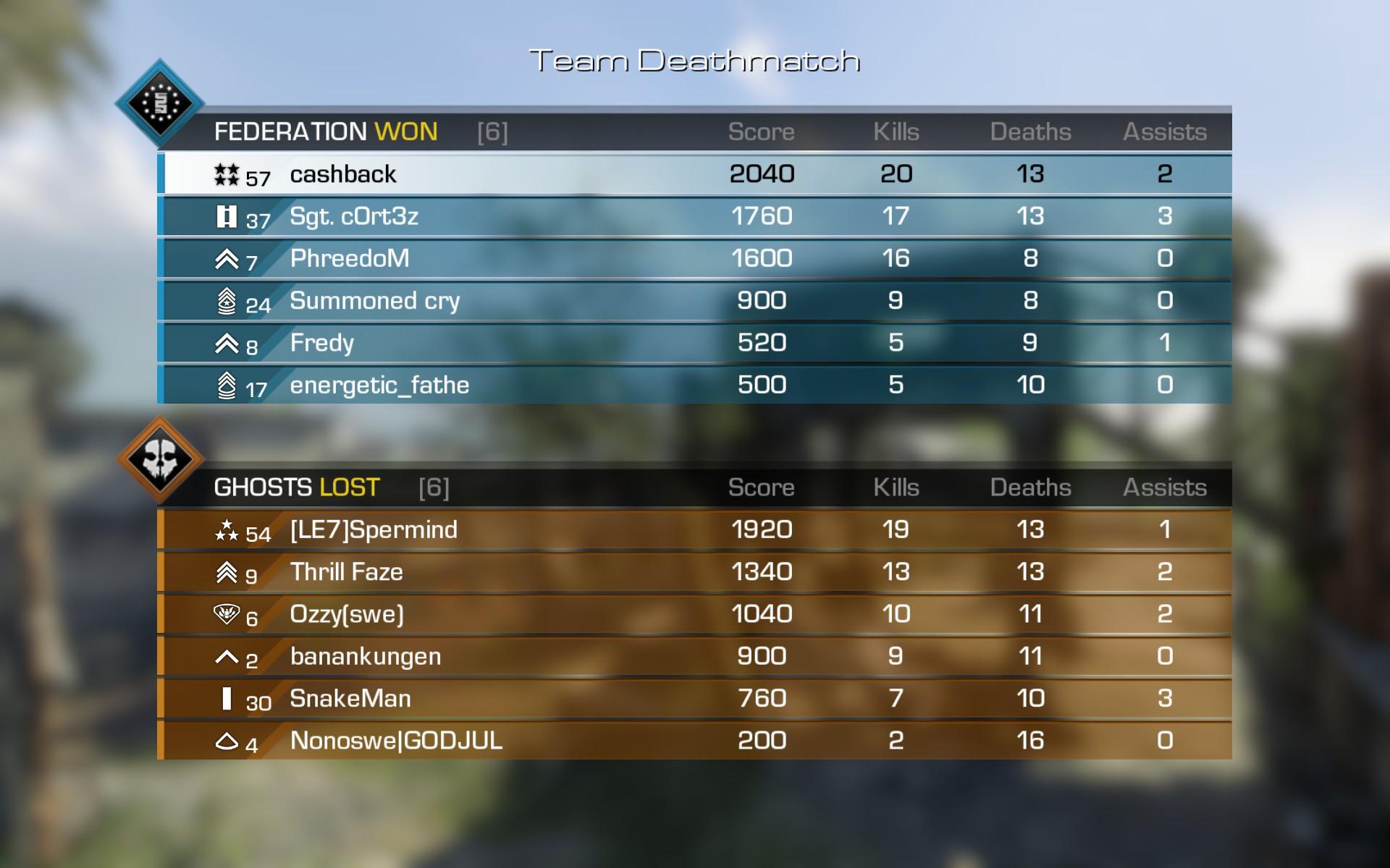 -rengetegszer lecsalóztak engem is... Ghosts-ban valahogy kevesebbszer, úgy látszik nem vagyok eléggé jó...