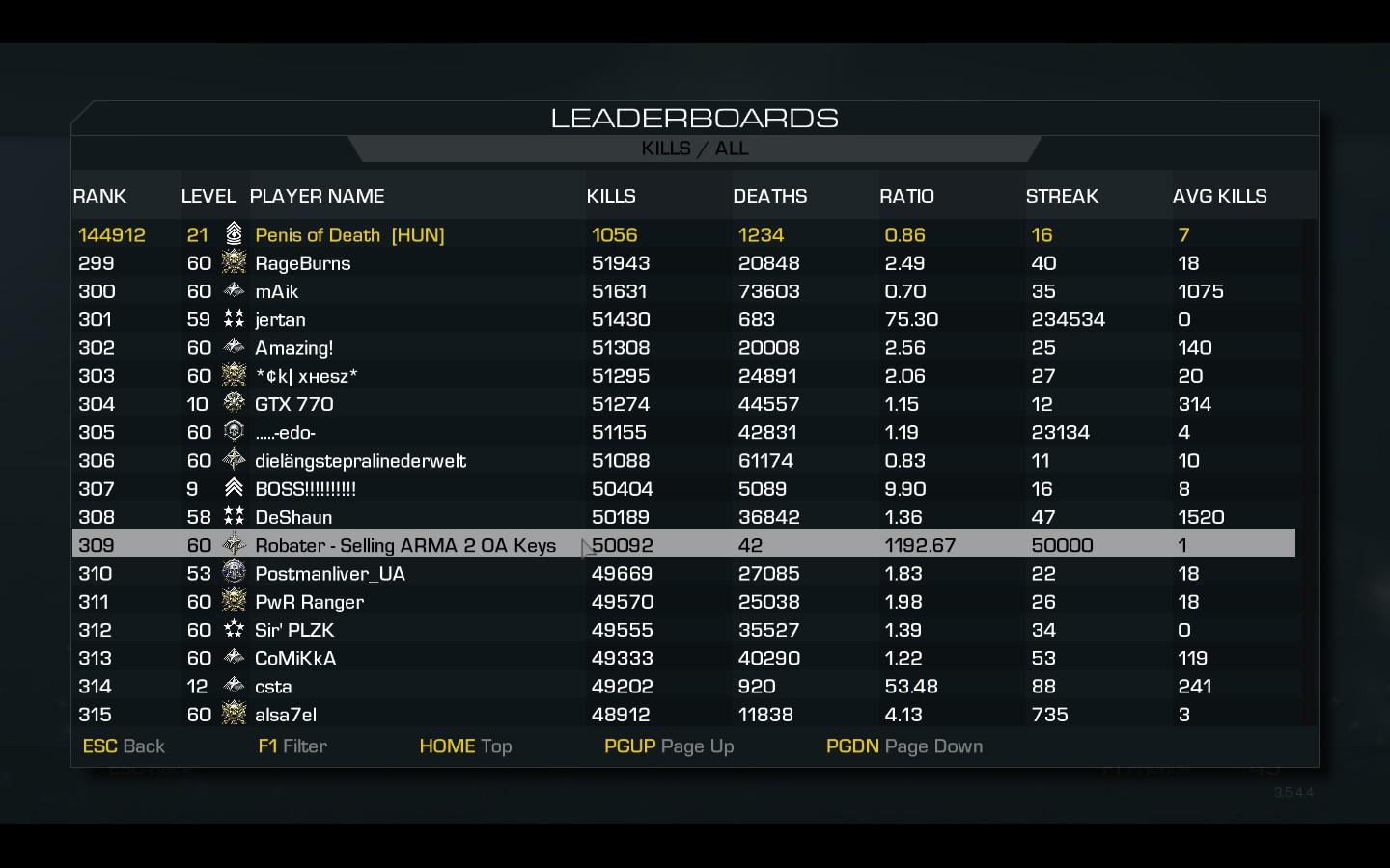 De legyen mindenkinek szíve-joga csalni.Annyi,hogy a tényleg extrém statosokat tényleg ki lehetne pakolni,lásd a korábbi toplista képek...talán el is rettentene embereket.Kibannolni a p...ba,és a listán otthagyni,egy csinos Banned felirattal...