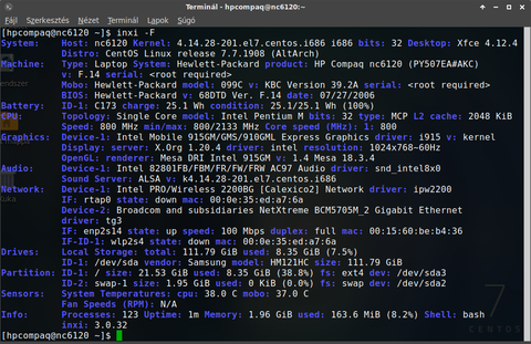 Bár már kint van a 8-as is, de egy régi 32bites laposra tettem 32 bites Centos 7-et Xfce-vel, ez utóbbit le kellett forgatni forrás epel rpm-ből, mert a félkész 32bites epelben nem voltak leforgatva, sok egyébbel, hogy valóban kényelmesebben használható legyen, ide feltöltöttem a csomagokat , hátha vki még hasznát veszi, minden nagyon rendben is menne, mindössze 160 mb-ot eszik alapjáraton és mégsem fapad