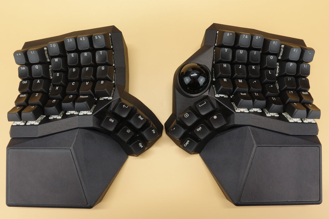 b) a jobb oldal felé eső szekción egy PMW 3360 szenzoros trackball, úgy, mint a Cyboard Imprinten – a bal oldalra nem muszáj második trackball, elég egy szimpla egérgörgő a "B" gomb mellé, Alps Japan encoderrel
