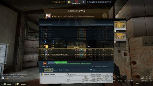 Inaktivitás miatt eltűnt a skillgroupom, tegnap volt egy abandoned meccsem, ma meg bedobott 3 orosz mellé akik anyanyelvükön kommunikáltak. Volt még rajtam kívül egy másik srác de őt addig votekickelték,míg végül inkább kilépett. Én sem frageltem topba magam, de vagy 3-4 kört hoztam nekik egyedül, de így is kikaptunk 16-9-re.