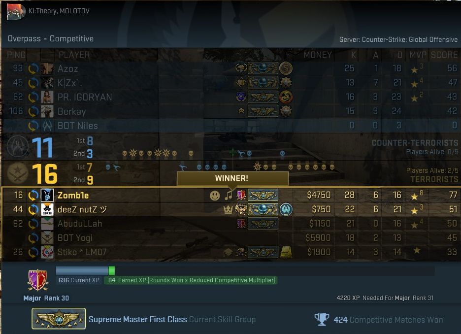 Miért van az, hogy az 1200 órás 100% full aimos nyomorék senkiházi paraszt még nem banned? Miért van az, hogy Supremen 3/8-as statból 39-17-be lövi magát szinte kizárólag fejessel? Bunnyhopból egygolyós fejes, 48 hp-val 100% full prefire ace. Az utolsó körben ~2 másodperc alatt, három külön irányból lőtt le három embert.