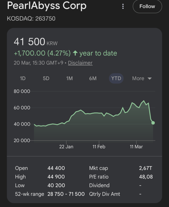 Bezuhant a Pearl Abyss árfolyama valami 30 százalékkal. Kíváncsi vagyok mi sül ki ebből.