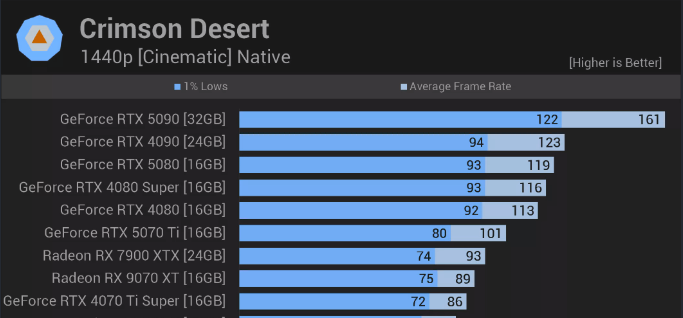 Corrections: there are two errors in the graphs. The first is the RTX 5080 in the 1440p Cinematic graph, it should be 119 fps. The second error is the RTX 4060 in the 4K graph, it should be just 18 fps. We will update and correct this info for the written version on TechSpot. 448