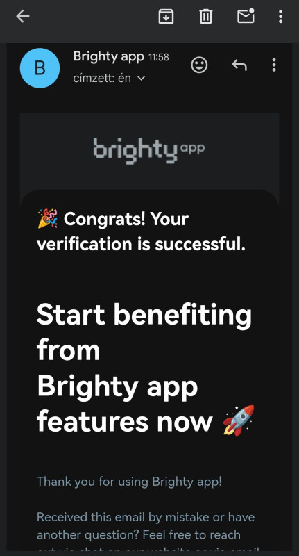 (Az email címemen láttam egy egy Brighty App regisztráció volt.)
