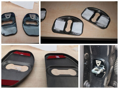A zár fedő megint csak színben pontosan passzol a kocsihoz. A gyári felragasztása fabatkát sem ért mivel nem volt elég vastag a ragasztócsík benne. Raktam rá saját kezűleg mint a képeken látszik de így elállt így maradt a biztos pont az FBS ragasztó.
