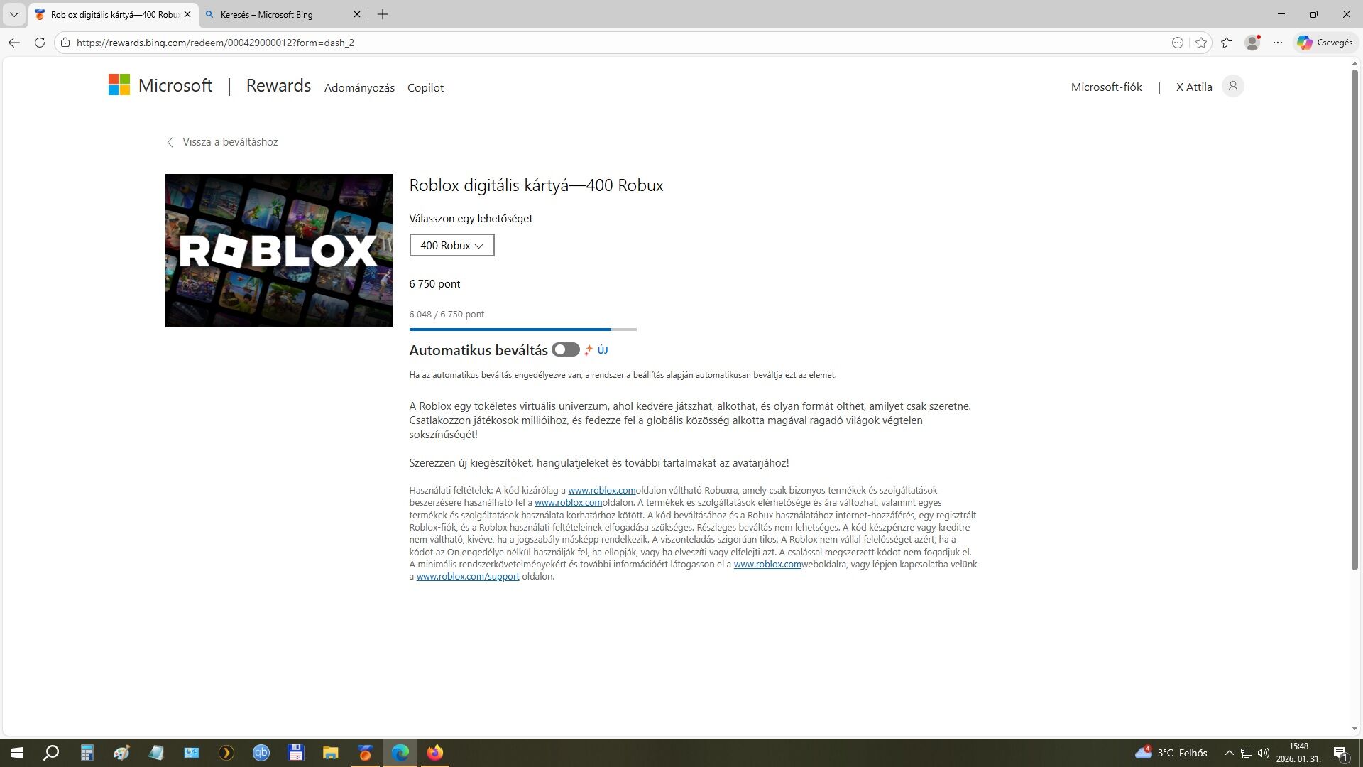 Rá kell állítani hogy csinálja a microsoft rewards, pontokat(Bing)