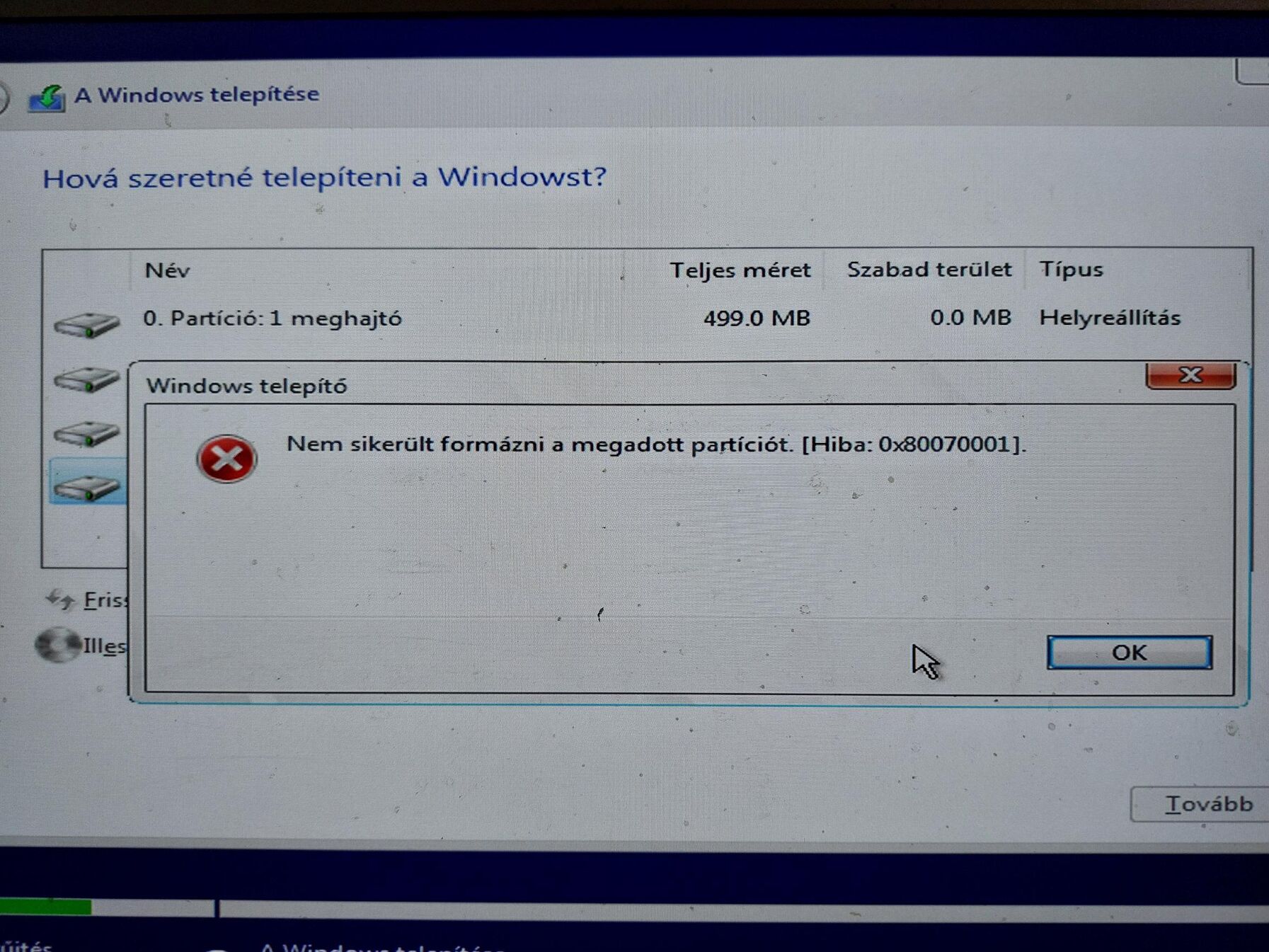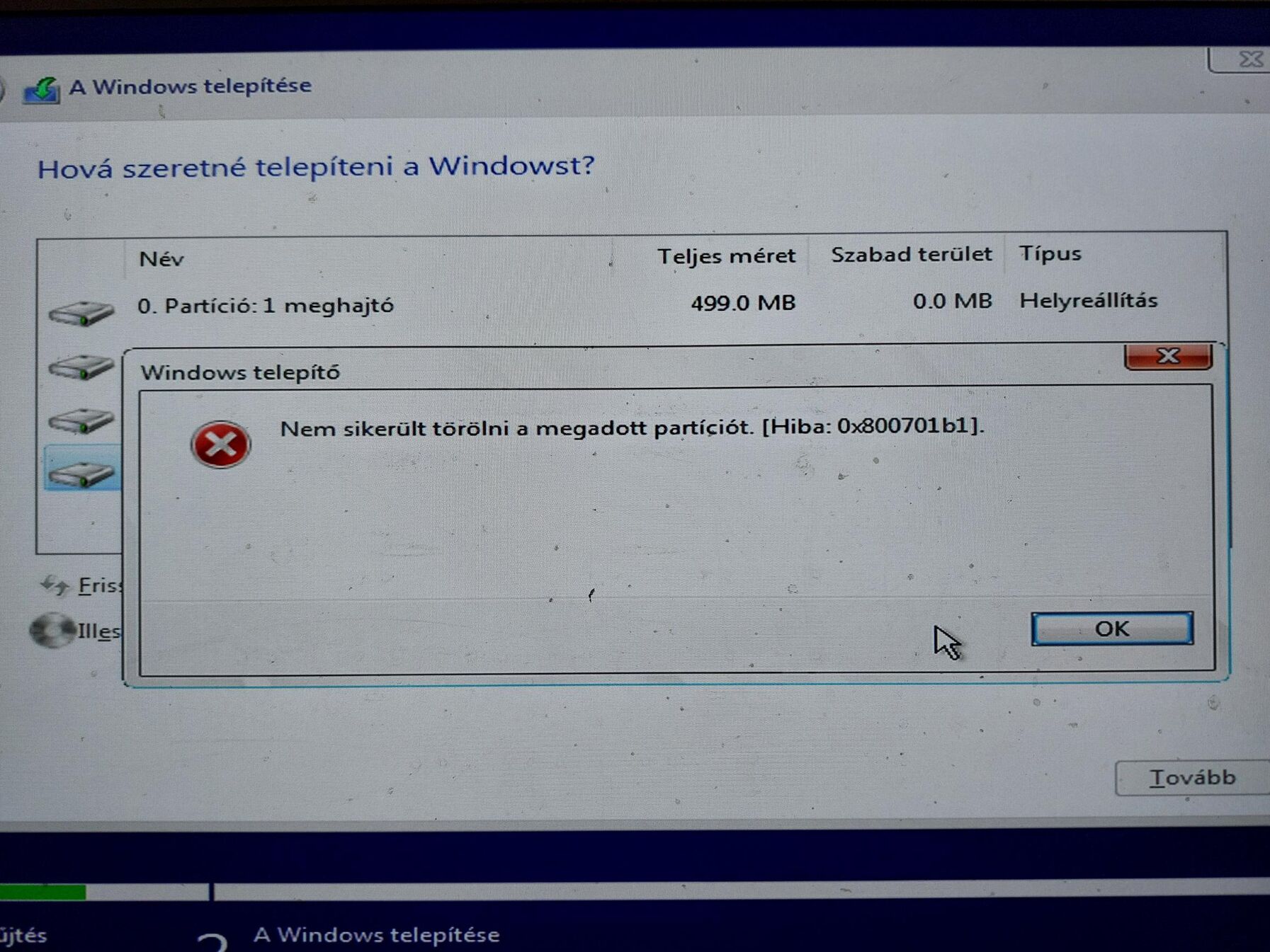 Próbáltam rá telepíteni és nem engedi se formázni se törölni a partíciót, a frissítésre el is tűnik minden partíció