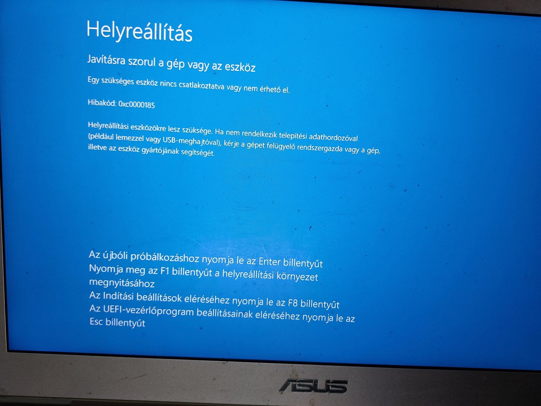 Nem indul, egy idő után felkészülés az automatikus javításra, és aztán ez [kép], és utána kikapcsol