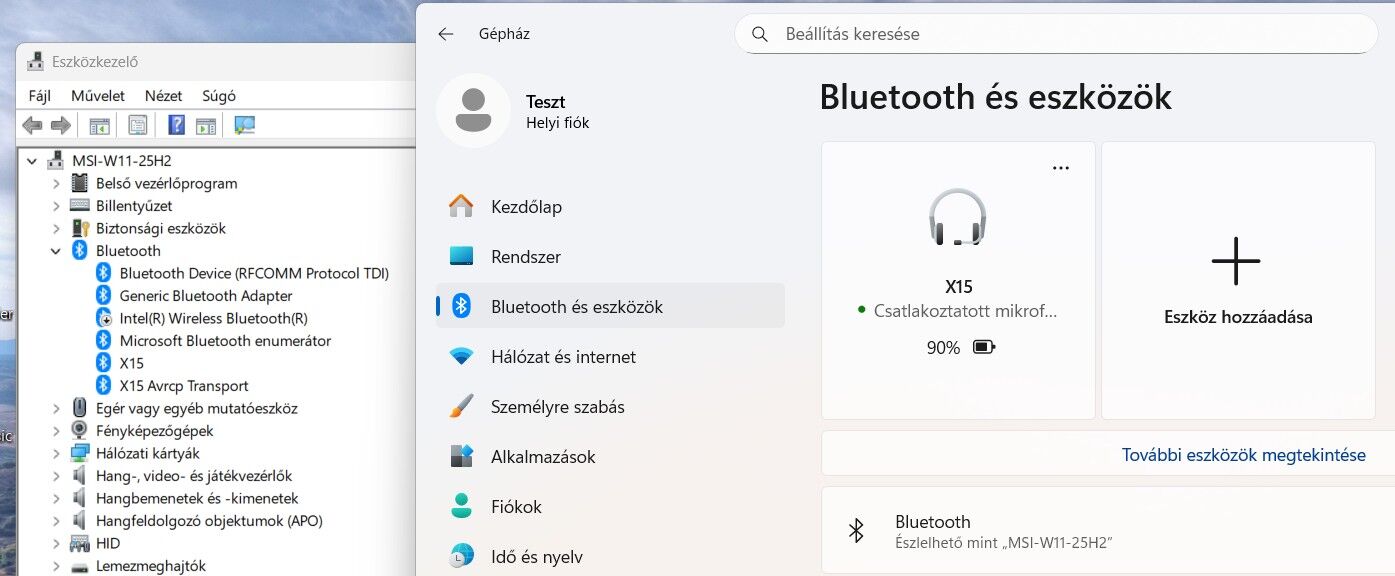 (Mert az egér HID-ként működik és nem kell neki semmi egyéb) Ellenben a füles és egyéb Bluetooth eszközök leválasztásra kerülnek. Bluetooth és eszközök-nél ott vannak a korábban csatlakoztatott eszközök, de mint írja ki van kapcsolva a Bluetooth elérés.