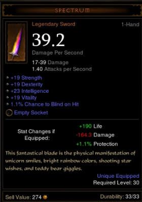 Arra értettem, hogy érdemes-e a mostani fegyómat (835.1 dmg, 1.43 speed, 103 strength) lecserélni egy 750-es axe-ra ami 1.30-as, és csak annyi stat van rajta, hogy +581 LoH.