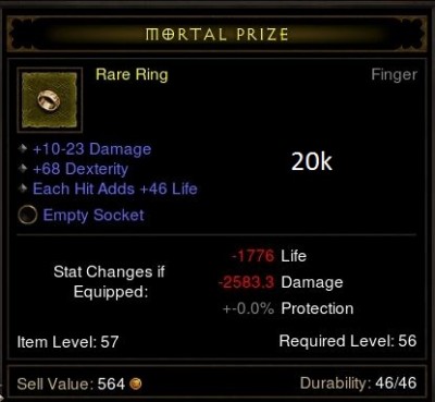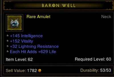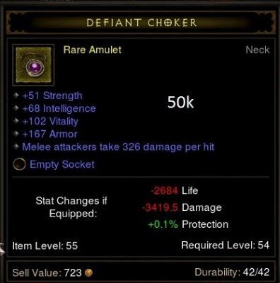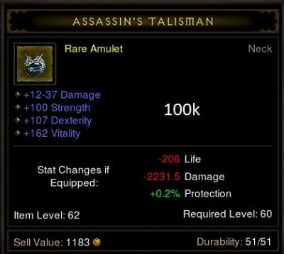 Reálisan nézve ennek az amulettnek alacsony a hasznossága. Max followeren használható vagy ha szereted a szado-mazo játékokat DH/monkkal akkor bevállalható. Nem ér annyit amit kérsz. A regen csak sokadlagos szempont és nem lényegi árnövelő. Ha csak statokat nézzük, akkor max 50-100k az egész. HA nagyduzzogva a resistet vagy regent mégis bevesszük a keresőbe akkor tán 150-200k, de nem az érték miatt, hanem mert kevesebb van belőle mint az "összmezőny" két statra. Többért nem fogják elvinni. Persze ha sok a szabad helyed az AH-ban, akkor tároljad nyugodtan ott pár napig