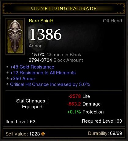 Én monk szemszögéből nézem. Act3, act4 szóló. Act2-ben kis túlzással mindegy, hogy pajzs, két fegyver vagy bármi. Továbbra is tartom, hogy a pajzs legnagyobb erénye a magas blokk, utána jönnek a jó statok és csak azt követően az armor. Az ilyen 10-20% blokkos pajzsok néhány 100k goldért sem mennek el. Nem véletlenen, hogy a jó Helm of Command is akár 10-20m is lehet. Pedig az +8% blokkot ad csak.