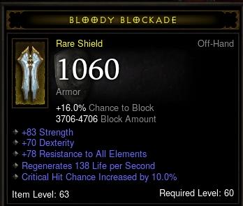 chc mániákus furafazonoknak a blokk nem ilyen magas prioritás. A 16 még jó is lehet. Mondjuk én közelharci stílusú barbárnál gondoltam alkalmankánt a váltásra, de ahhoz ez az armor és statpont elégtelen menniyiség. Meg azóta kétfegyveres módban nyomulok, így a pajzskérdés határozatlan időre elhalasztódott.. Amúgy is van egy brutál armor-str-allres kombósom. Nem kell ennél jobban maximalistának lennem