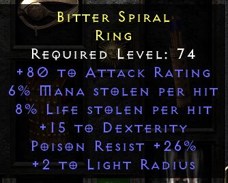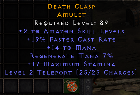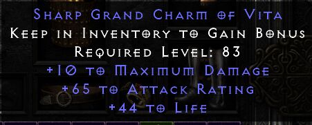 Ez egy lvl30 "Concentration" LLD (low level duel) Paladin. Az angelic ring/amu nagyon hasznos a játék kezdeti szakaszában. 2 gyűrűt is használhatsz. Jelentős AR/life boostot ad. Illetve ezek a max/ar/life charmok a játék egyik legdrágább charmjai. NM bocikat kell ezerrel farmolni.