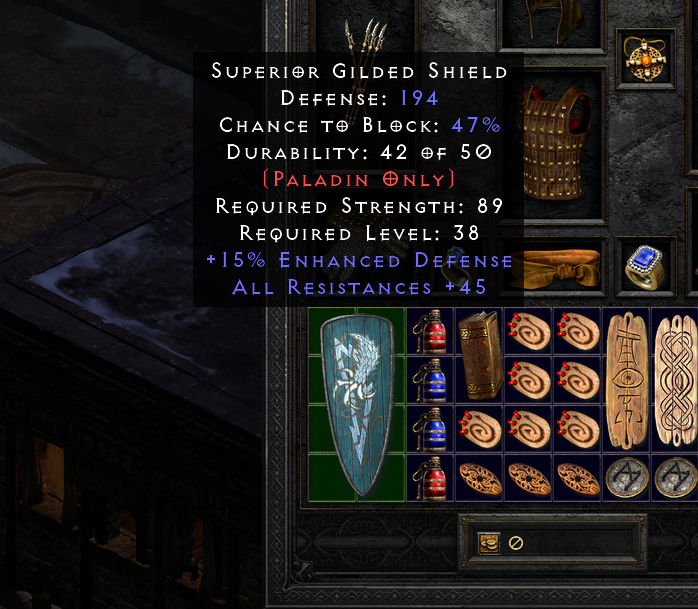 10% block az virtuálisan vagy 30 dex. Ha ehhez jönne még 10+ dex / str és jobb all res + teleport az igen jó lenne. De KURVA nehéz.