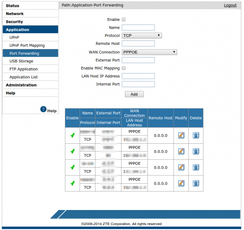 birka1001: ha talalsz megoldast hogy egyszerre nem csak 1 portot hanem pl. egy 50es kupacot is tudjak nyitni (port range forward) akkor szolhatnal, mert pillanatnyilag nem alkalmas a ZTE csoda erre a bonyolult muveletre... meg egy sima DynDNS dolgot se képes lekezelni.