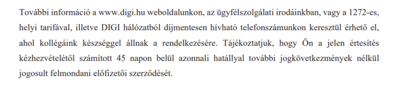 45 napon belül fel lehet mondani. Valaki próbálta már, itt van ügyfélmegtartás? Ha nincs akkor tényleg szabadulni akarnak a DIGI-s ügyfelektől.