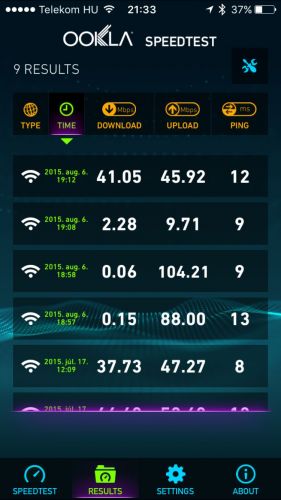 A letöltés szinte semmi, a feltöltés jónak tűnik. Többszörre is ugyanez lett az eredmény. Belenéztem a logokba, mintha ledobálná a routert a net, többször meg is szakadt a mérés. A végén visszadugtam a ZTE-t, az a legutolsó mérés.