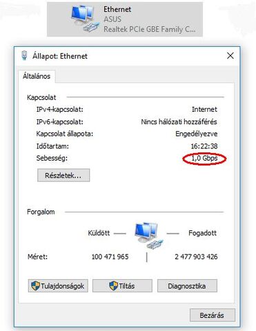 Ezt a kábelt ami be van dugva kár cserélni, mert ez láthatóan - Lásd a képen az 1 Gbps értéket! - Gigabites kapcsolatot ad.