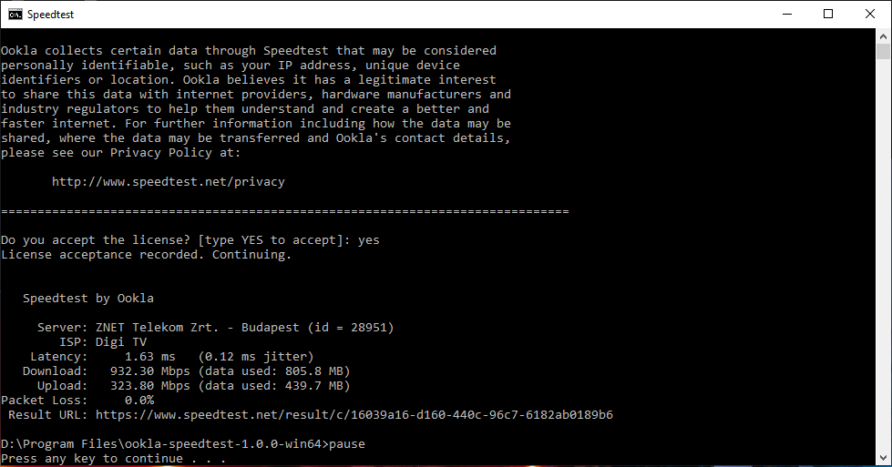 Amire a többiek utalnak, hogy az átkötés után általában a 100-as net szokott maradni másnap reggelig: 98Mbps körül szokott maradni a sávszéll.