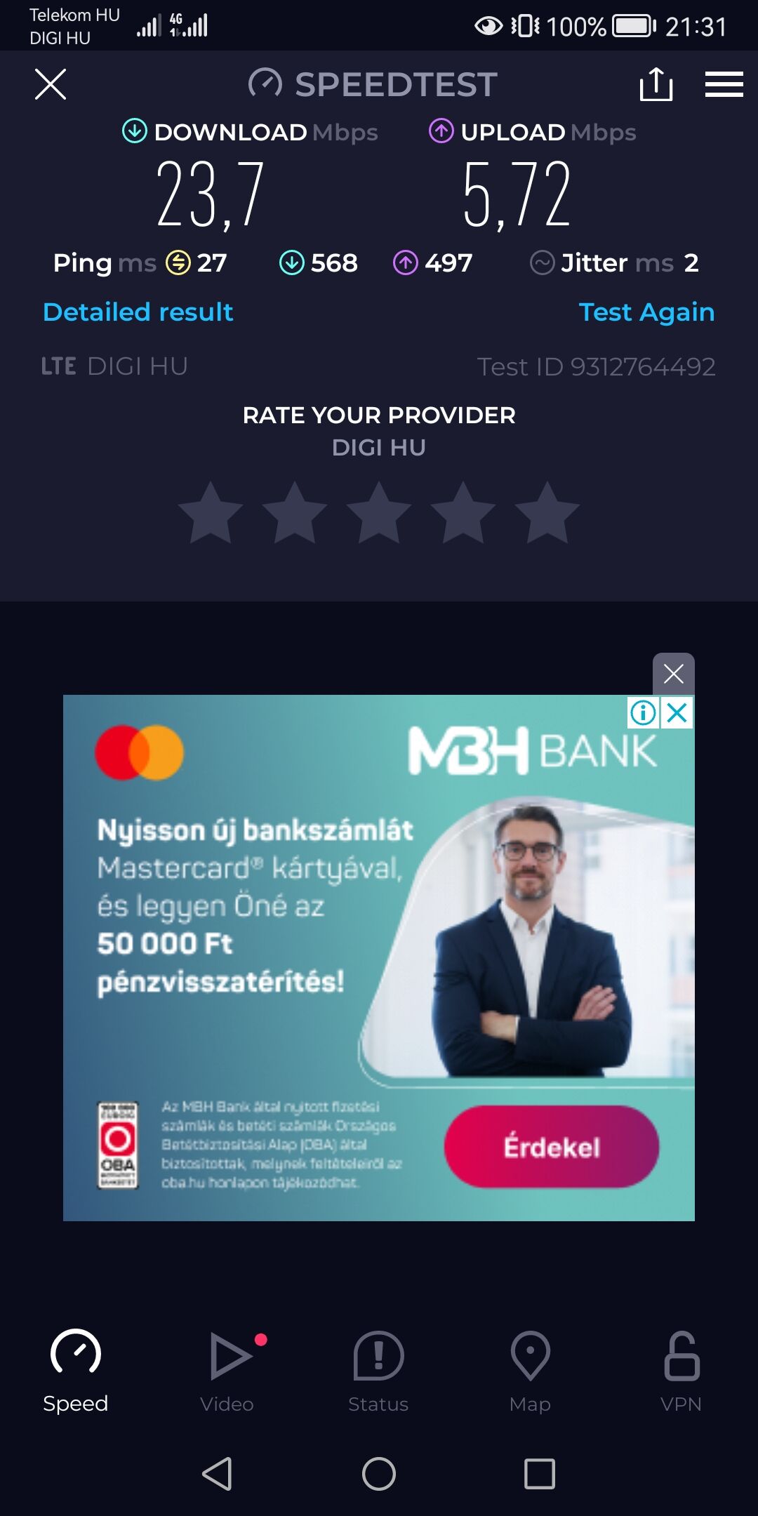 Egy szép speedtest értékkel búcsúzunk a digi hálózatától,