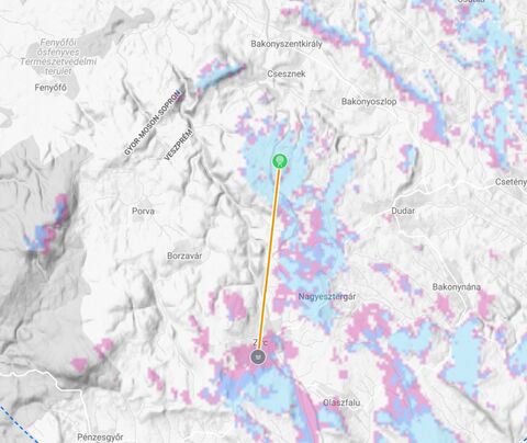 Furcsa választás ez a helyszín, a közeli falvakat pont nem fogja lefedni. Gyakorlatilag csak a 82-es fedésére jó, viszont arra nagyon. Dudarig biztosan elszól majd, mert azon a ponton látni a dudari AH-s tornyot, de Gézaháza - Csesznek - Bakonyszentkirály útvonalon jellemzően távolabbi adókról gyűjtik be a jelet más szolgáltatók is. (Győr felé jó a kilátás, na meg Dudar felé) Nem véletlen, hogy a bakonyszentkirályi AH torony oda épült, ahová. Meg a mobil torony is.... Gézaházáról pont nem látsz be egyik völgybe se, ahol vannak a falvak. Sebaj, ha megépül és élesítik, majd megnézem mit tud.