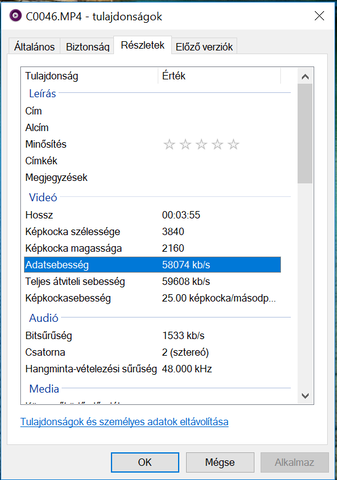 ilyenkor. A képen egy saját házivideó tulajdonságlapja