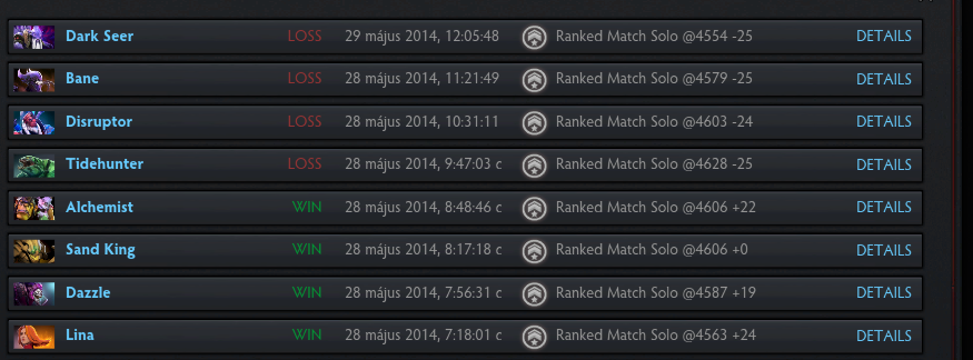 Permanenant low prio cykanoobokkal, battlefury-s chaosknightokkal, feederekkel, csapatmunkára képtelen egyénekkel, wardot csak folyamatos b@szogatás után wardoló supportolókkal.Kizárt a normális meccs esélye, ott dől el hogy kinél van kevesebb retardorosz, és disconectel-e valaki.