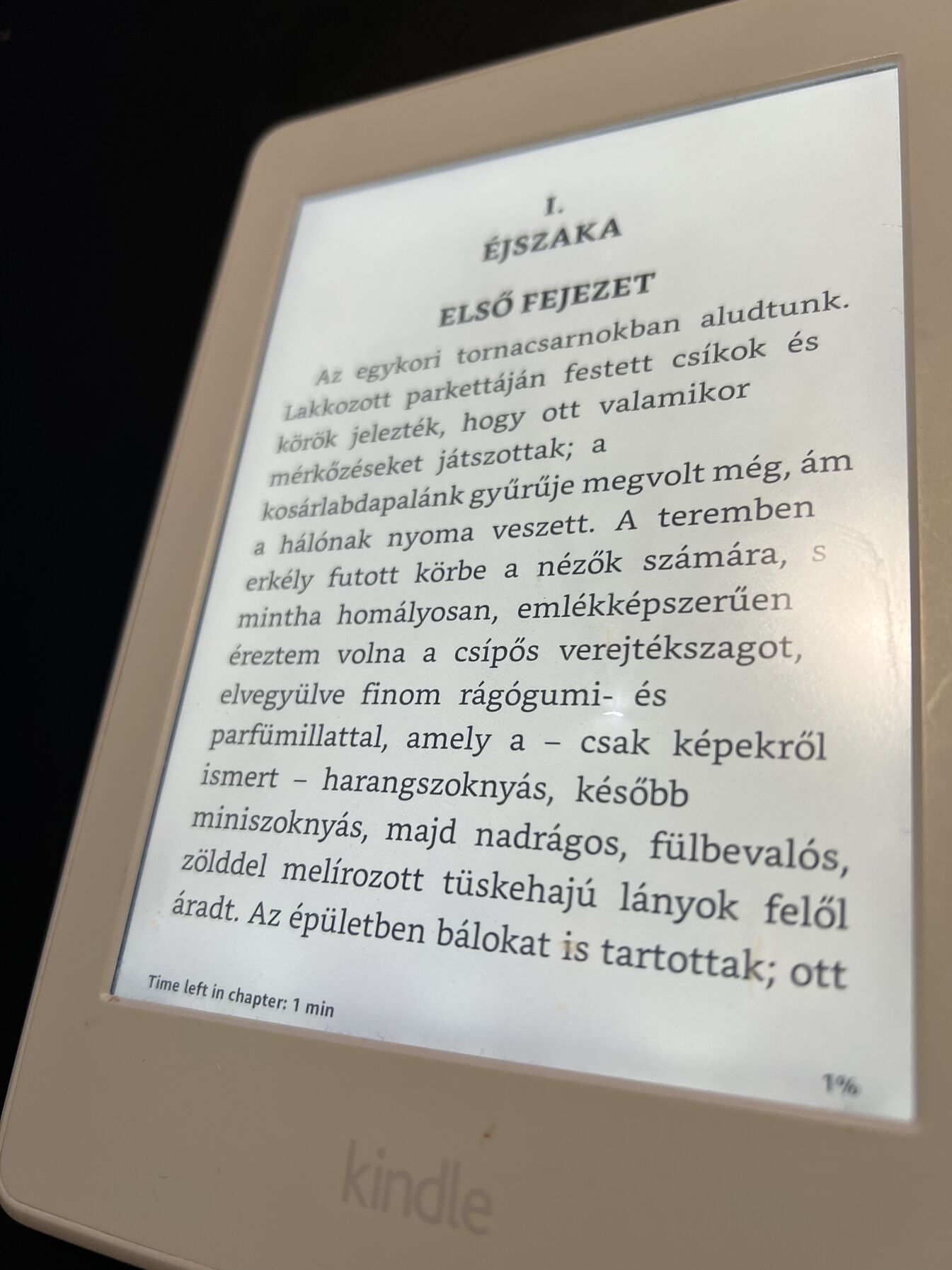 Régi Kindle 6"-os kijelzőn olvasok elfordítva.
