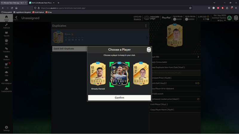 Viszont mindig szinte pluszban jövök ki az elmúlt napban. Csak a softban szab határt. Meg a kedv.Amúgy a 83, 84 lapból is szinte mindenki megvan. És lejött az idei első Kerrem is. Viszont Gonsalo Guedesnek híre hamva nem volt. Persze pickből nem jöhet, de abból a kb 150 89 exchangeből (7500 player) igazán kijöhetett volna