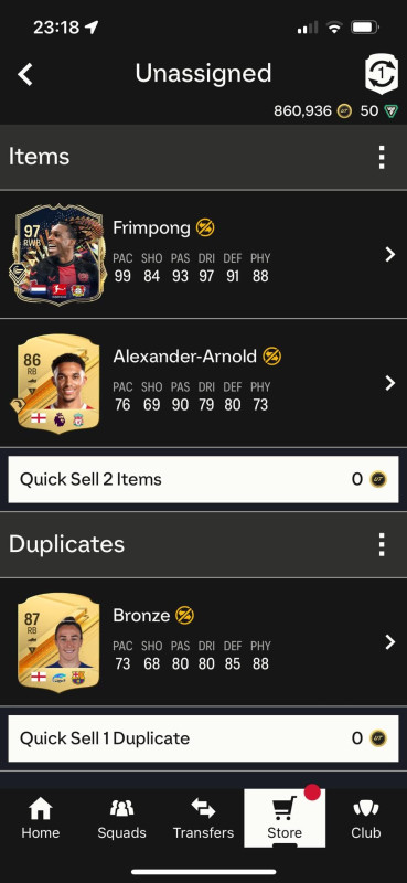 Pedig nekem most kivételesen jól indult, sokáig jól álltam, aztán jött egy olyan szopó széria, ahol esélyem sem volt semmire. Végül csak 9 wint engedett ez a szar, pedig simának tűnt sokáig a 11, de még a 10 sem lett meg, amivel kaptam volna egy 87x4-et meg egy Serie A tots picket pluszban.Viszont abból az egyetlen red pickből jött egy Smith, elég jó lapnak néz ki, és ahogy nézem, 1,5 hete még 3-4 millió volt... Viszont kb. esélytelen beépítenem, szóval fogalmam sincs, mi legyen vele