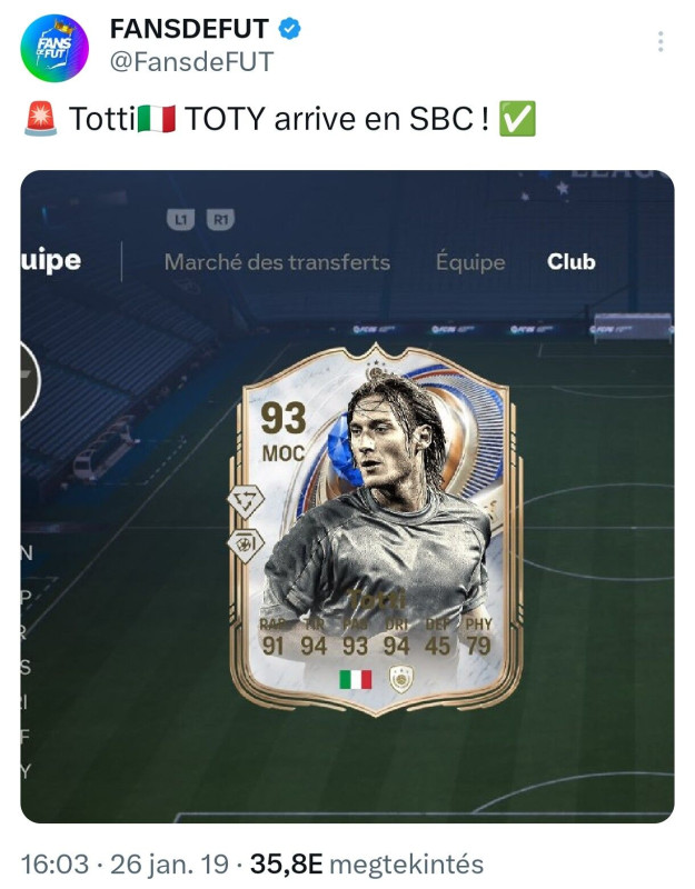 Sziasztok, az utóbbi időben nagyon balszerencsés voltam a nyitásokkal. Minden pack szinte a minimumot adta. Most úgy voltam vele, csak essünk túl ezen a promón úgyse nyitok semmit. 2019 óta játszom a FUT-al Toty-t még sose nyitottam, csak max nyáron a futties alatt. De ilyen értékű eladhatót se még sosem. Tegnap reggel a kávét a konyha pultra köptem emiatt: