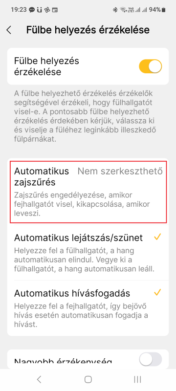 Most volt firmware frissítés. Után csináltam egy gyári visszaállítást. Most látom, hogy nem is alapbeállítás a Fülbe helyezés érzékelése. Igazából nekem csak azért hasznos, mert ha kiveszem a fülest, leáll a zene, de annyira nem fontos. -