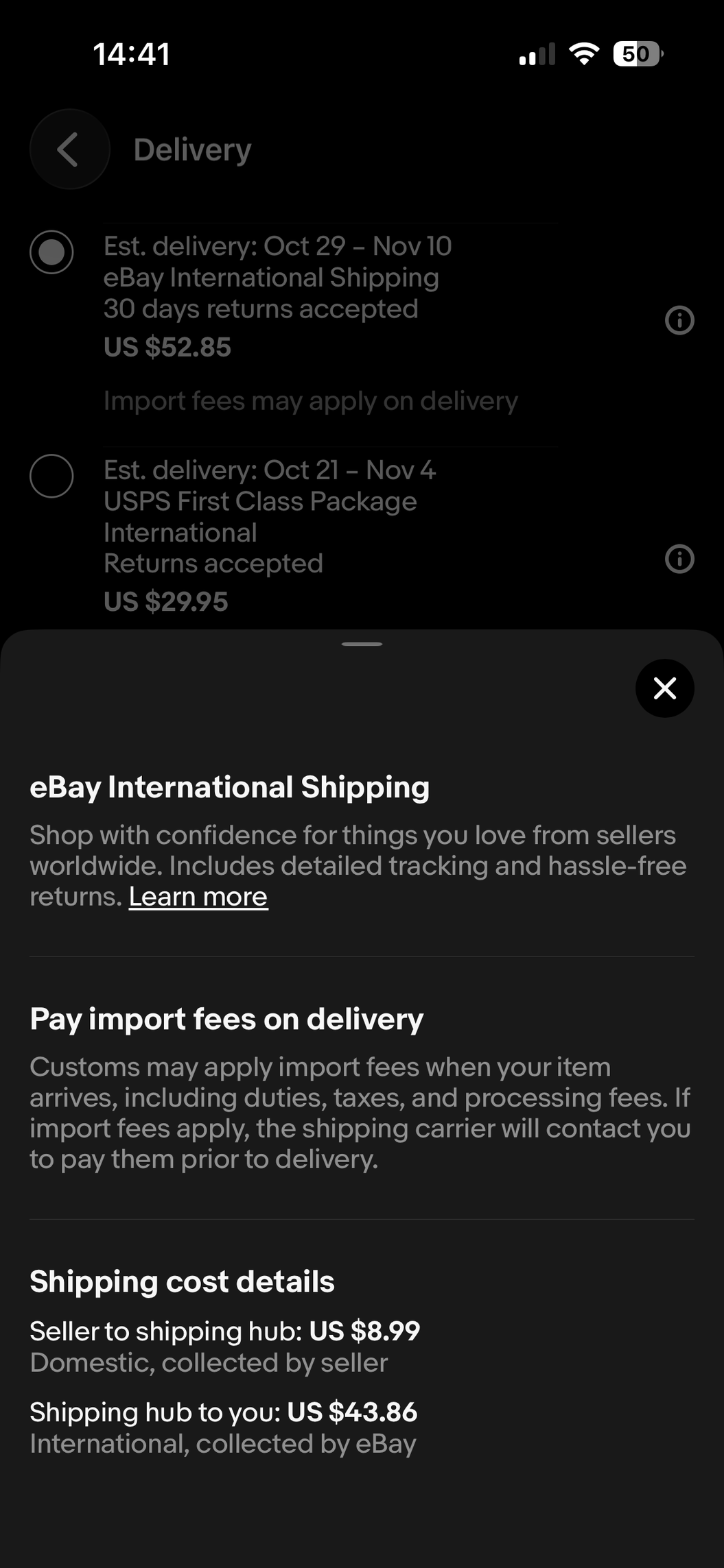 A következőket kell csinálni, amit kérnek kifizeted, letöltöd az ezzel kapcsolatos dokumentumokat, majd az eBay-től visszakéred azt amit ők szedtek be, a 13.51$-t.