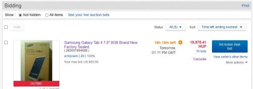 Ebay oldalán jobbra fent My Ebay felirat - Bids / Offers. Ott van a másik kalkulátor, 2 külön dologról beszélünk.De ha nem licitálsz rá akkor nem fogod ott megtalálni, mert ez az a termék amit én linkeltem.