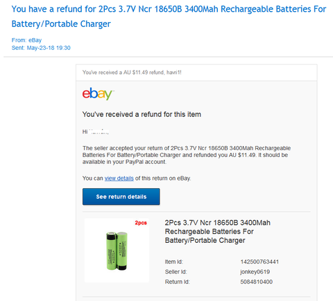Ha visszamondanád akkor eleve visszakapja azt a pénzt amit jutalékként az eBay és a PayPal levon és neki a teljes összeget kell mindkét hely szerződési feltételei alapján visszaadni.