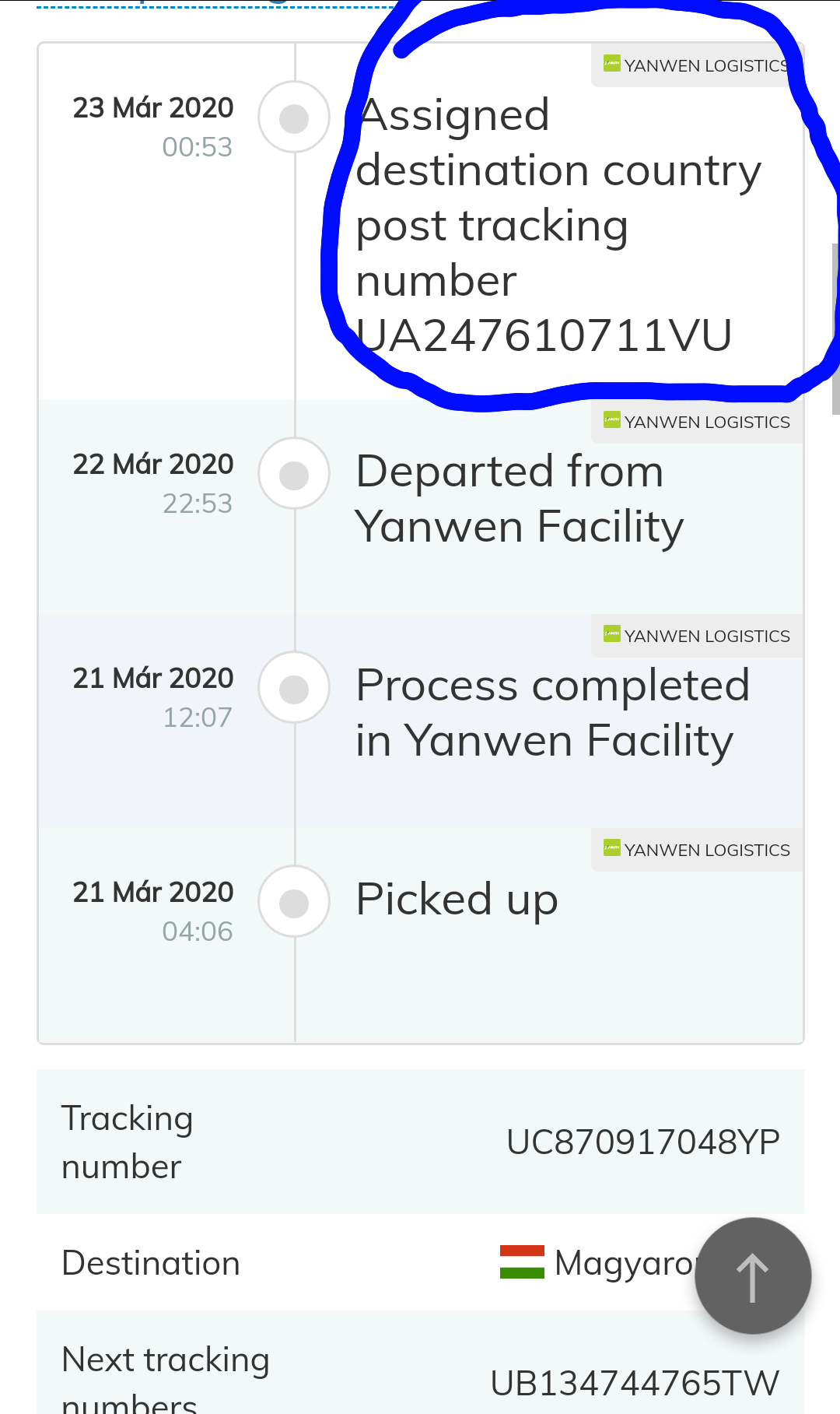 Semmit nem jelent, a Yanwen szokott ilyeneket csinálni, de neked majd a UB134744765TW lesz az amivel érkezni fog. Megrendelik a csomagszállítást tőlük, kap egy küldeményazonosítót azután pedig a tényleges szállító nyomkövetési azonosítóját, küldemény azonosítóját kapja meg.