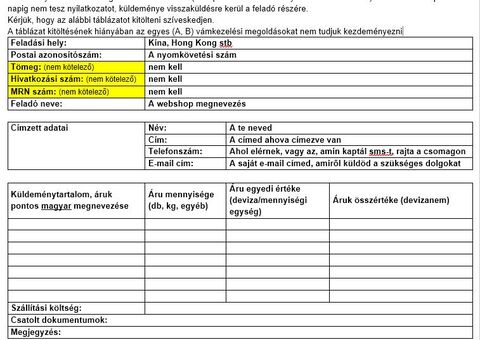 A küldemény rész meg egyértelmű, arra figyelni hogy a szállítási költség külön van, nem írandó az Áruk összértéke (devizanem) helyre