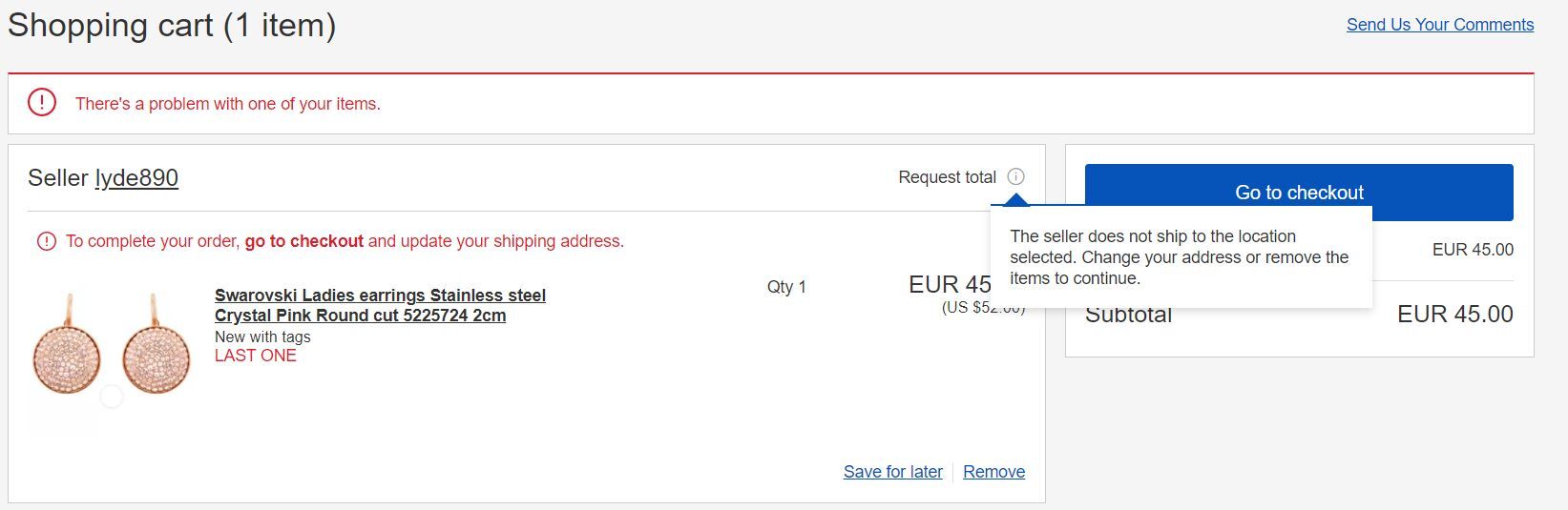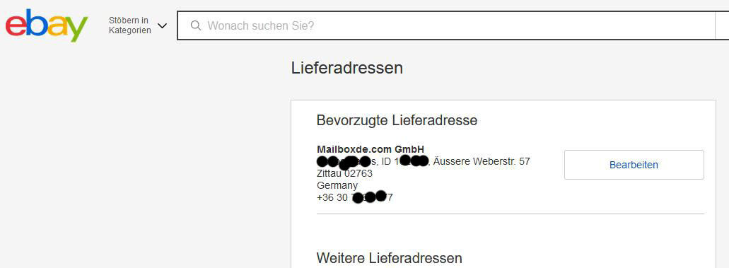 De: ha a personal info-ban, ahol a regisztrációs, vagy személyes adatok vannak, a magyar címemet írom, akkor nem enged licitálni a német ebay-en, hiába van bent szállítási címnek a német mailboxde elsődlegesként, és hiába választom adott terméknél is a németországi szállítás, akkor is ha megnyomom a licit gombot azonnal írja pirossal, hogy az eladó nem szállít magyarországra.Viszont ha a Personal info-ban a regisztrációs adatoknál az országot megváltoztatom németországra, plus beírok egy 5 számjegyű ZIP -et ( város utca,, telefonszám bármi lehet) akkor azonnal enged licitálni.