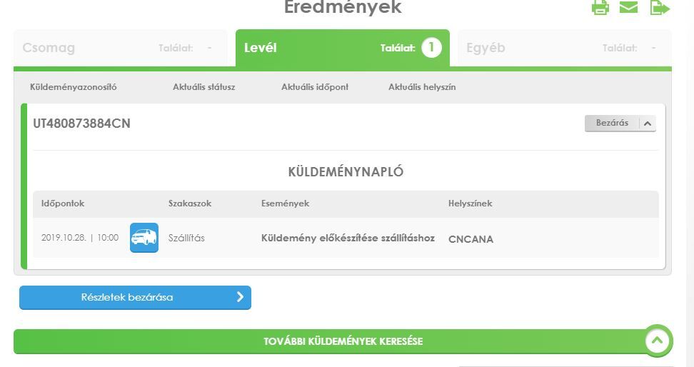 A szállító cégre hivatkozik, hogy az cég válasza szerint még úton van a csomag.