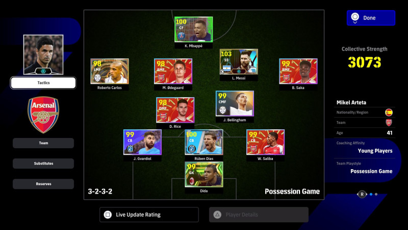 - Arteta +1 Passing.Ezek a plusz értékek egyébként pont elegek ahhoz, hogy a 97-es Mbappemat 101-re, az 99-es Messimet pedig 103-ra emelje. Szóval bizonyos játékosoknál ezek az új menedzserek akár +4 OVR értéket is hozzáadnak.